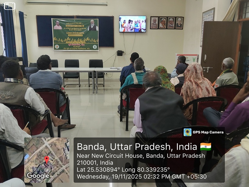 भारत सरकार की किसान हित में संचालित प्रमुख योजना पी0एम0-किसान फरवरी, 2019 से शुरू की गयी थी। योजना का मुख्य उद्देष्य कृषकों को रू0 6000/- वार्षिक की आर्थिक मदद करना है। अभी तक रू0 3.91 लाख करोड की धनराषि कृषकों के खातों में हस्तान्तरित की जा चुकी है। योजना की अगस्त-नवम्बर 2025 अवधि की 21वीं किष्त माननीय प्रधानमंत्री श्री नरेन्द्र मोदी जी द्वारा दिनांक 19.11.2025 को रू0 18000 करोड की धनराषि 9 करोड कृषकों के खातों में हस्तान्तरित की जायेगी। इस अवसर पर कोयम्बटूर, तमिलनाडू में दक्षिण भारत प्राकृतिक खेती समिट 2025 के उदघाटन पर आयोजित कार्यक्रम में माननीय प्रधानमंत्री कृषकों को सम्बोधित किया। सम्बोधन का सीधा प्रसारण जनपद के कृषकों को कृषि विज्ञान केन्द्र पर दिखाया गया। माननीय प्रधानमंत्री जी ने अपने उद्बोधन में कहा कि वर्तमान में रसायनों के अधाधुंध प्रयोग से मृदा व मानव स्वास्थ्य पर विपरीत प्रभाव पड रहा है। ऐसी स्थिति में प्राकृतिक खेती एक महत्वपूर्ण विकल्प बनकर उभर रही है। प्राकृतिक खेती भारत का स्वदेषी विचार है जोकि पर्यावरण के अनुकूल है साथ ही जलवायु परिवर्तन, मृदा व मानव स्वास्थ्य जैसे महत्वपूर्ण मुद्दों को हल करती है। इस अवसर पर केन्द्र के वरिष्ठ वैज्ञानिक डा0 श्याम सिंह द्वारा उपस्थित कृषकों कोे फसल अवषेष प्रबन्धन के बारे में विस्तार से बताया कि धान की पुआॅल को जल्दी सडाने के लिये पूसा डिकम्पोजर का प्रयोग करें या यूरिया से भी यह कार्य आसान हो जाता है। रबी की फसलों में पोषक तत्व प्रबन्धन पर चर्चा करते हुये डा0 सिंह द्वारा किसानों को एकीकृत एवं संतुलित पोषक तत्व प्रबन्धन का तरीका एवं इसके महत्व पर प्रकाष डाला गया। डा0 सिंह ने रबी फसलों में खरपतवार प्रबन्धन एवं बुआई की विधि व बीज की मात्रा के बारे में विस्तार से चर्चा की। केन्द्र के पादप सुरक्षा वैज्ञानिक डा0 चंचल सिंह ने प्राकृतिक खेती की आवष्यकता, लाभ तथा सफलता के प्रमुख बिंदुओं पर विस्तार से चर्चा की। केन्द्र की गृहविज्ञान की वैज्ञानिक डा0 प्रज्ञा ओझा द्वारा पोषक थाली के महत्व व प्रमुख अवयवों की जानकारी के साथ पोषण वाटिका की सफलता के गुण भी किसानों को बताये। केन्द्र की प्रसार वैज्ञानिक डा0 दीक्षा पटेल द्वारा कृषकों को प्रसार तकनीकों विषेषकर मोबाईल एप्स द्वारा कृषकों की समस्याओं के समाधान के तरीकों पर चर्चा की एवं कृषकों को कृषि विज्ञान केन्द्र से जुडने का आवाहन किया। पषुपालन के वैज्ञानिक डा0 आलोक सिंह द्वारा पषुओं के स्वास्थ्य के लिये टीकाकरण एवं दूध उत्पादन हेतु संतुलित पषु आहार पर विस्तार से चर्चा की गयी। कार्यक्रम में कृषकों के फीड बैक भी लिये गये जिसमें खरीफ की फसल असमय वर्षा के कारण नष्ट होने की बात सभी कृषकों ने एवं रबी की फसलो