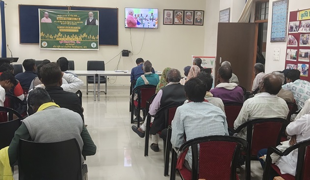 | 35 | माननीय यशस्वी प्रधानमंत्री श्री नरेन्द्र मोदी जी द्वारा पी0एम0 किसान निधि की चौदहवीं किस्त का हस्तानान्तरण का सीधा प्रसारण | राजस्थान के सीकर में पी0एम0 किसान सम्मेलन का अयोजन किया गया। जिसमें देश के माननीय यशस्वी प्रधानमंत्री श्री नरेन्द्र मोदी जी ने कृषकों को सम्बोधित किया। इस कार्यक्रम का सीधा प्रसारण कृषि विज्ञान केन्द्र, बांदा के प्रशिक्षण कक्ष में जनपद के 40 महिला कृषकों सहित कुल 105 कृ... Read more | 2023-07-27 |