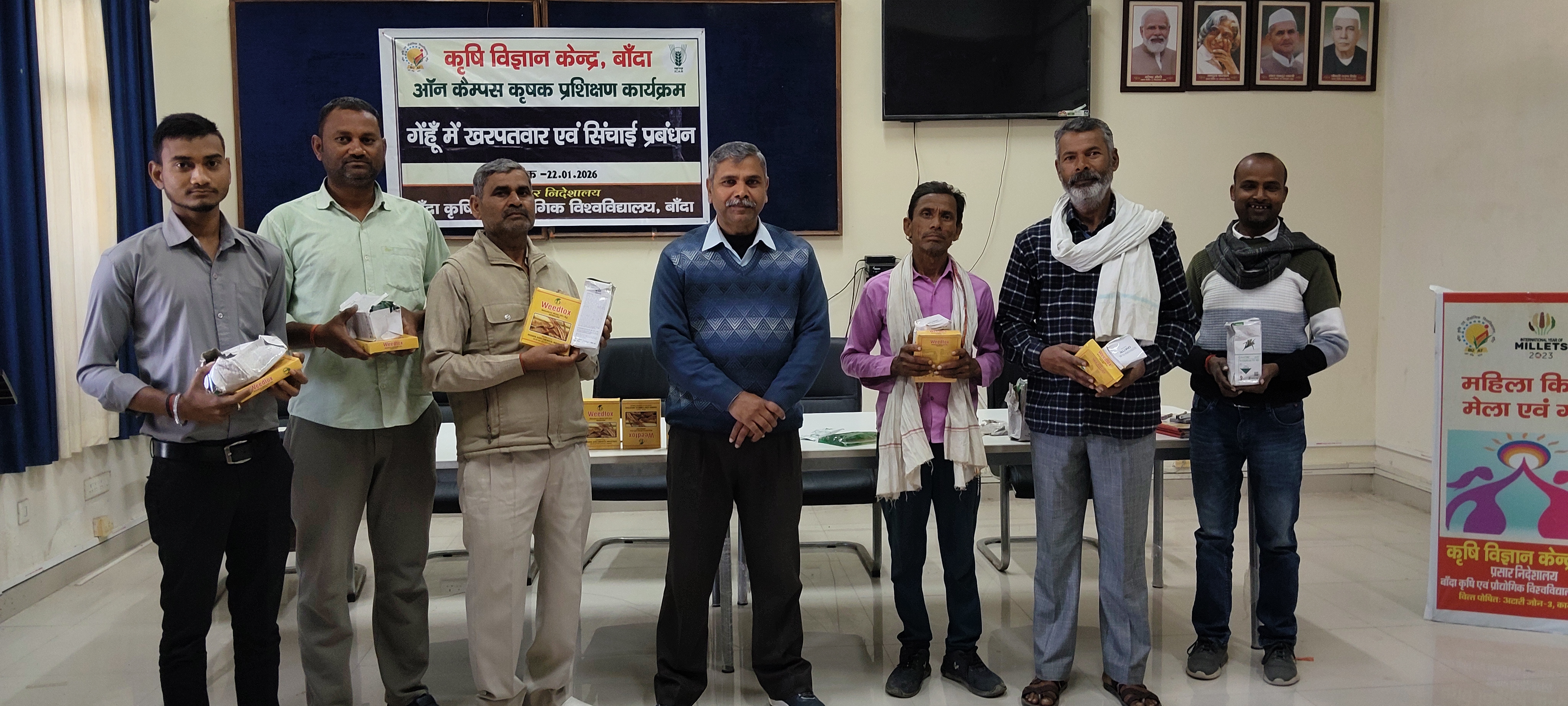 | कृषि विज्ञान केंद्र, बांदा की स्थापना वर्ष 2007 में आईसीएआर, नई दिल्ली द्वारा चन्द्र शेखर आज़ाद कृषि एवं प्रौद्योगिक विश्वविद्यालय, कानपुर के प्रशासनिक नियंत्रण के अन्तर्गत की गई थी, बाद में इसे अप्रैल, 2017 में बांदा कृषि एवं प्रौद्योगिक विश्वविद्यालय, बांदा में स्थानांतरित कर दिया गया। अपनी स्थापना के बाद से, इसने ग्रामीण लोगों- किसान युवा, खेतिहर महिलाएं और अन्य लाभार्थियों को सेवा दी है। इस अवधि के दौरान इसने फसल उत्पादन, बागवानी, पौध संरक्षण, पशु विज्ञान, गृह विज्ञान और कृषि प्रसार के प्रमुख विषयों में कई अल्पकालिक और दीर्घकालिक ऑन और ऑफ-कैंपस प्रशिक्षण कार्यक्रम आयोजित किए हैं। केवीके ने तकनीकी मूल्यांकन, प्रदर्शन और सिद्ध कृषि प्रौद्योगिकियों को कृषक समुदाय को हस्तांतरित करने में सराहनीय कार्य किया है। इन प्रौद्योगिकियों की सामाजिक प्रासंगिकता है और बुंदेलखंड क्षेत्र के ग्रामीण लोगों के आर्थिक उत्थान में मदद की है। केवीके बांदा जिले में कृषक समुदाय के प्रकाशस्तंभ के रूप में लगातार उत्कृष्ट कार्य कर रहा है। |
