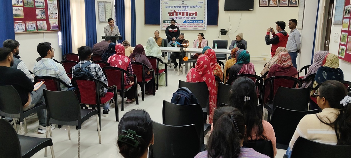 बुन्देलखण्ड में स्वरोजगार के विकास और ग्रामीण पलायन को रोकने के लिये कार्यालय विकास आयुक्त हस्तशिल्प, प्रयागराज द्वारा जन जागरूकता कार्यक्रम चौपाल का आयोजन बांदा कृषि विश्वविद्यालय, बांदा के कृषि विज्ञान केन्द्र, बांदा के सहयोग से आयोजित किया गया। कार्यक्रम की मुख्य अतिथि सुश्री तान्या बनर्जी जी ने बताया कि भारत सरकार ने ग्रामीण जनों के विकास के लिये कृषि आधारित हस्तशिल्प के विकास के लिये बहुत से कार्यक्रम प्रारम्भ किये हैं, वहीं हस्तशिल्प विकास अधिकारी श्री विशाल वर्मा जी ने शिल्प कर्मियों के आर्थिक सहयोग, चिकित्सा व पेंशन आदि सुविधाओं के बारे में जानकारी दी। उन्होने बताया कि भारत सरकार का उद्देश्य है कि ग्रामीण युवाओं को हस्तशिल्प के प्रशिक्षण द्वारा दक्ष हस्तशिल्पी बनाने, लगातार प्रशिक्षणों के द्वारा उनकी दक्षता में सरकार द्वारा आयोजित प्रशिक्षणों के माध्यम से उत्तरोत्तर बढोत्तरी करना एवं उनकी वृद्धावस्था को पेंशन द्वारा सुरक्षित करना है। जागरूकता हेतु चौपाल कार्यक्रम के द्वारा सभी योजनाओं की जानकारी विभाग द्वारा समय-समय पर दी जाती है। जागरूकता कार्यक्रम में उपस्थित कारीगरों, किसानों और युवाओं को मंत्रालय के द्वारा बनायी गयी फिल्म भी दिखायी गयी। शिल्पी पहचान पत्र का फार्म के0वी0के0 के वैज्ञानिकों द्वारा लाभार्थियों को प्रदान किया गया।